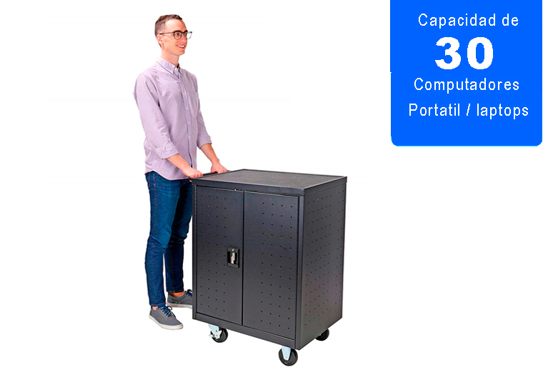 Perfecto para aquellos lugares donde se vea como necesidad transportar y cargar 30 laptops al mismo tiempo permitiendo tenerlos a punto cuando se necesite usar en un momento indicado, ademas de esto guardandolos bajo llave evitando perdidad o robos.