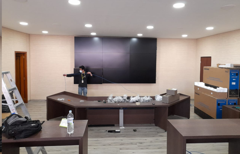 Logrando la creación de 3 estructuras video Wall de gran formato 3x3 en la pared, sencillamente espectacular el resultado y proceso de instalación del mismo, para así dejar un cliente satisfecho y conforme con todo el servicio realizado.