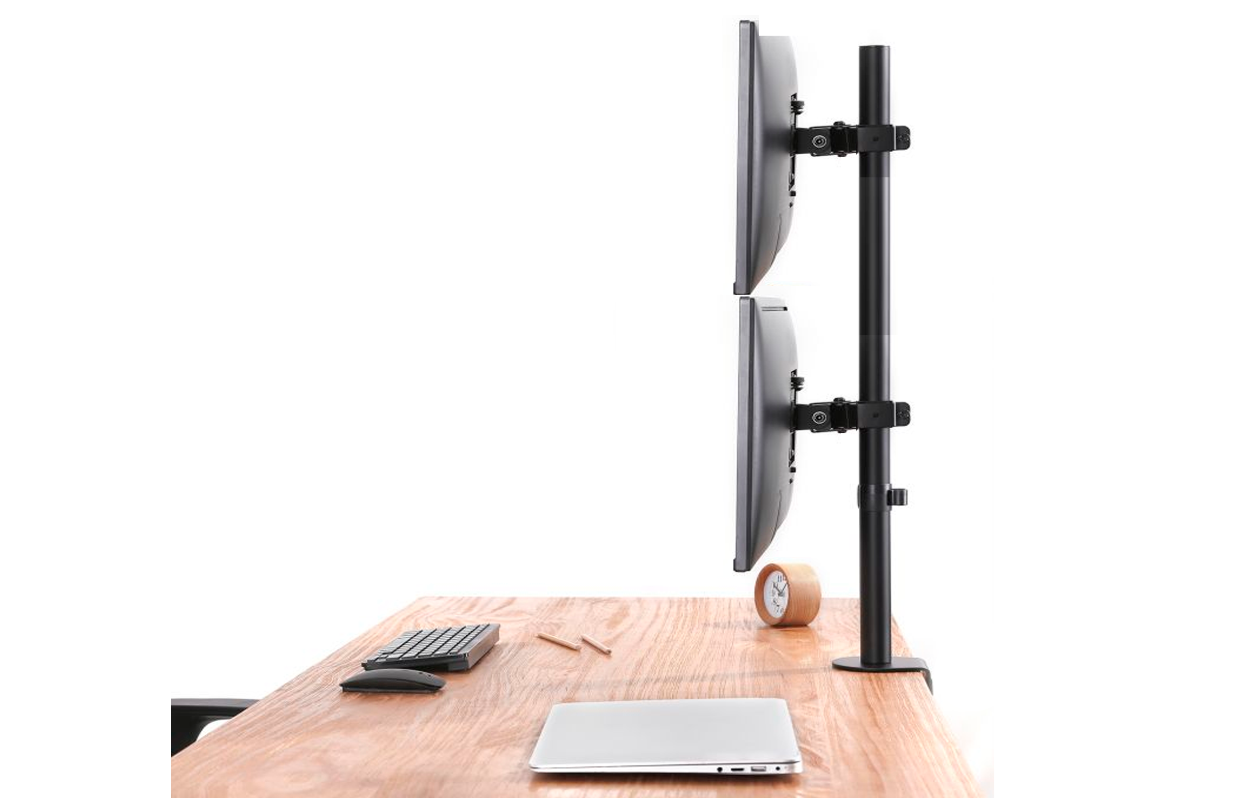 Cuenta con un diseño de anclaje en mesa lo que permite instalar los dos monitores de