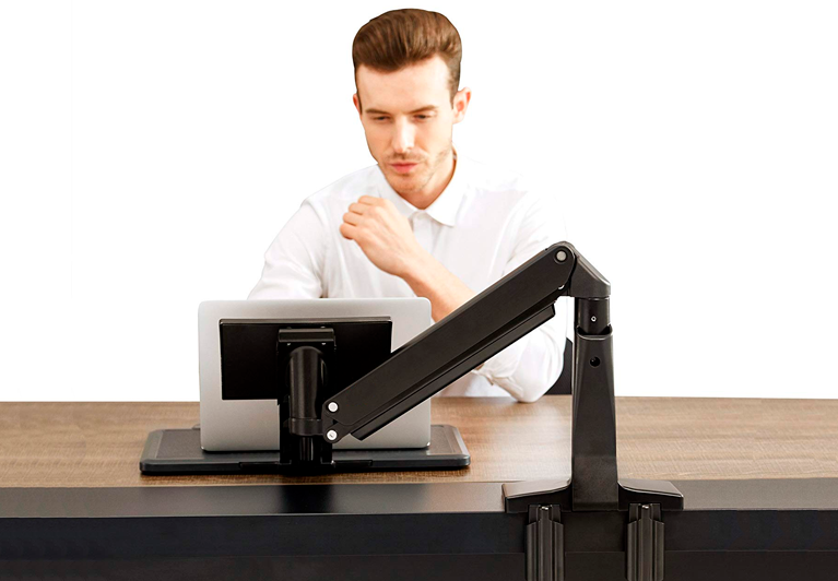 Estacion de trabajo con brazo flexible para computadores portatiles, cuenta con un