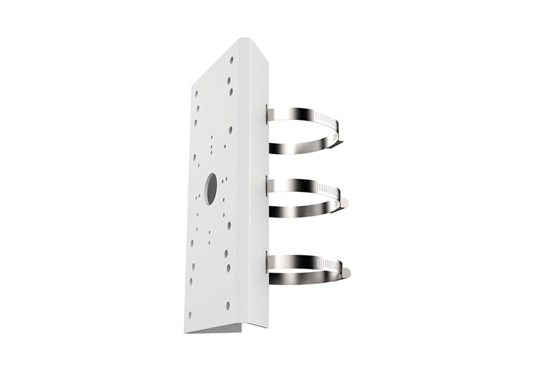 Soporte para cámaras Hikvision con sistema de seguridad por medio de abrazaderas metálicas, las