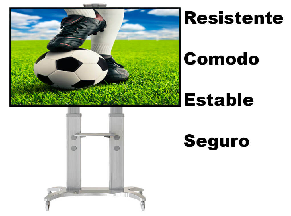 Todo esto y mucho mas lo trae el soporte de piso resistente a cantidades enormes de peso construido en base de contorno de aluminio con materiales de excelente calidad,un diseño industrial el cual permite sostener televisores demasiado grandes y pesados gracias a su estructura resistente por sus dos postes que le brindan mas estabilidad y seguridad a la hora de ser utilizado.Con una innovadora estructura la cual en su parte inferior trae 4 ruedas industriales capaces de soportar grandes cantidades de peso para asi proporcionar una solucion en la movilidad del televisor y este poder ser usado practicamente en conferencias, entretenimiento, exposiciones, reuniones,etc.