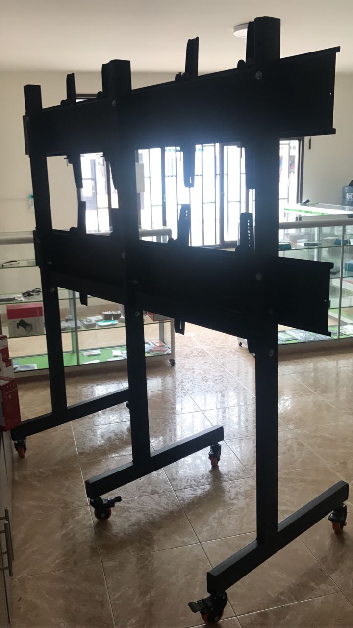 Base movil gracias a sus 4 ruedas en cada uno de sus extremos inferiores las cuales nos permitiran trasladar nuestras pantallas donde queramos y las veces que lo deseemos.